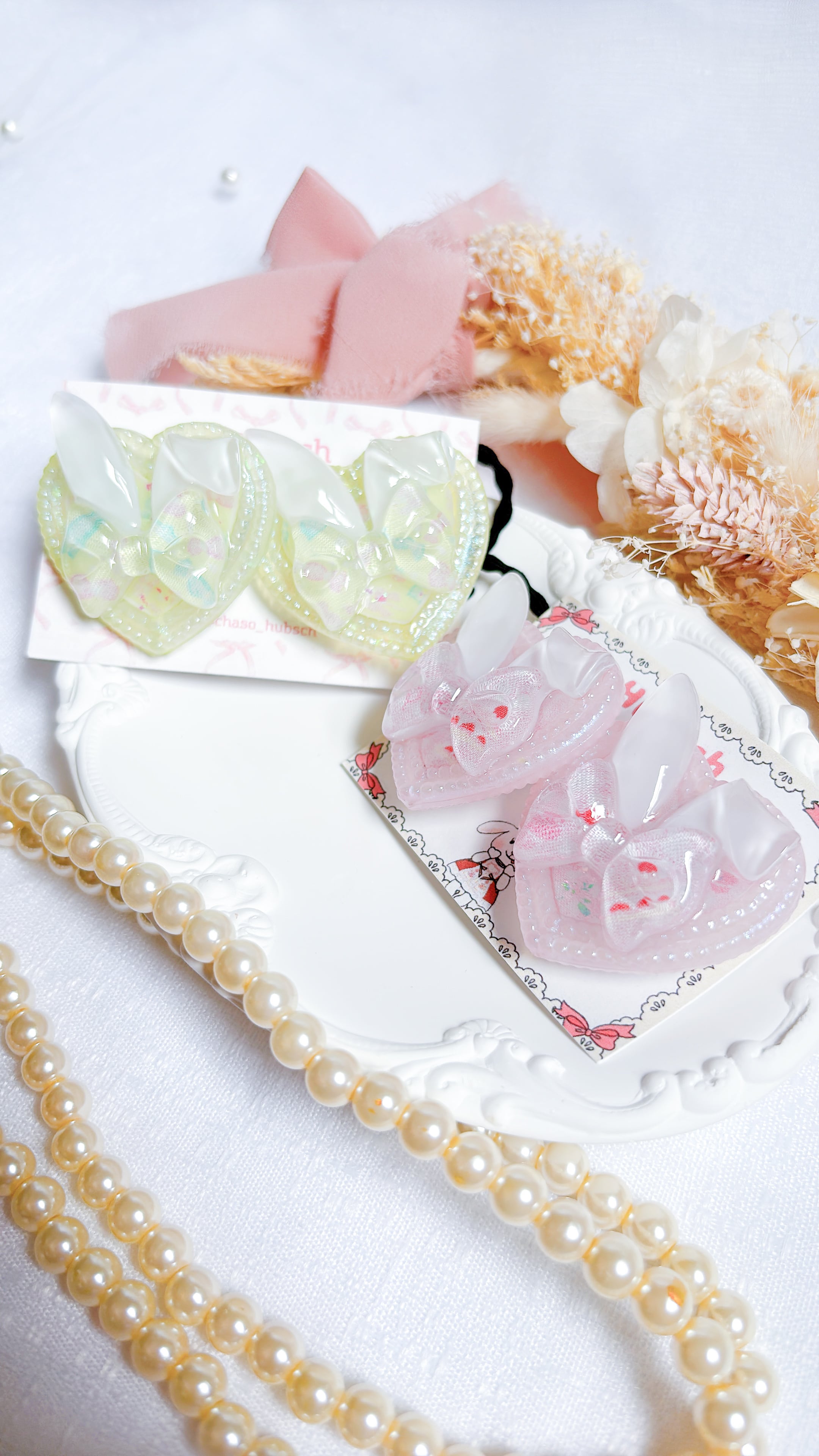 オーダー うさみみハートのツインヘアゴム